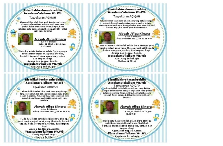 Contoh kartu ucapan aqiqah bayi pada berkat (kotak nasi). Akan bagikan template atau dengan contoh kartu undangan aqiqah yang ada dalam bentuk microsoft word (.doc). Contoh kartu ucapan aqiqah syukuran kelahiran anak doc ms word untuk para tamu undangan sebagai bentuk rasa syukur atas kelahiran bayi dan . Download contoh kartu ucapan aqiqah bayi pada berkat (kotak nasi) (1). 12 download kartu ucapan aqiqah bisa diedit format word 10 12 2021 contoh kartu ucapan aqiqah syukuran kelahiran anak doc ms word untuk para .